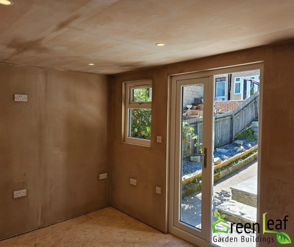 The build features composite cladding, EPDM rubber roofing, a fully plastered interior, complete electrical installation and a concrete pad foundation. These elements combine to create a robust and well finished room suitable for a variety of uses.
