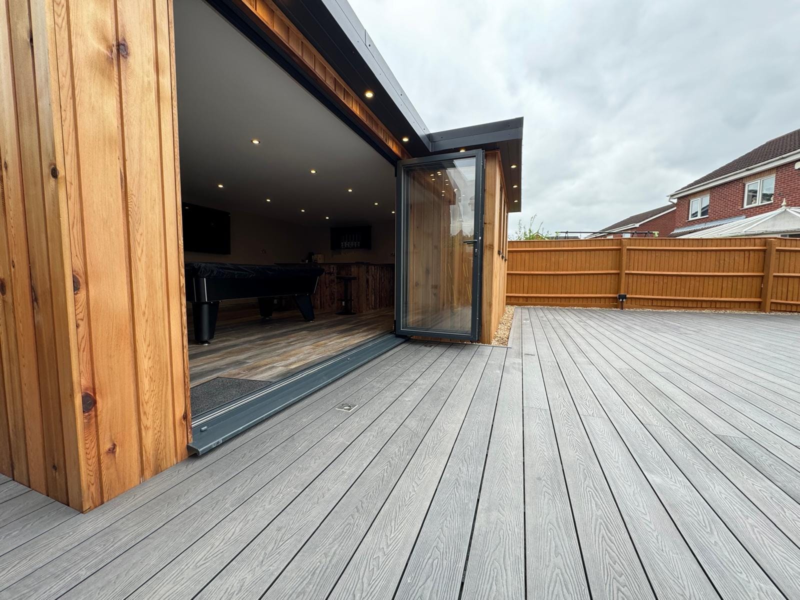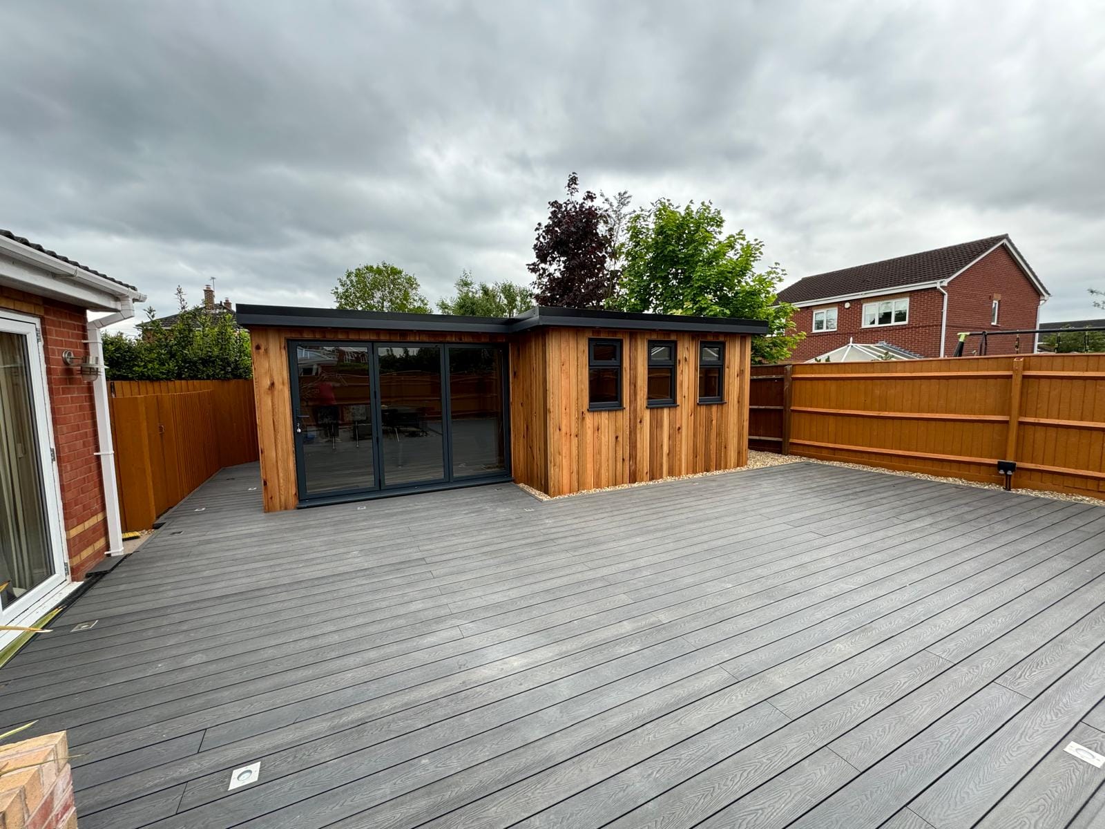 Transform your garden with our exquisite garden decking options. Our versatile decking solutions cater to all your outdoor living needs, from cosy patio areas to expansive entertainment spaces. They’re also perfect for enhancing the space surrounding a garden room or SIP extension. With a range of styles and finishes, our garden decking adds both beauty and functionality to your outdoor environment.